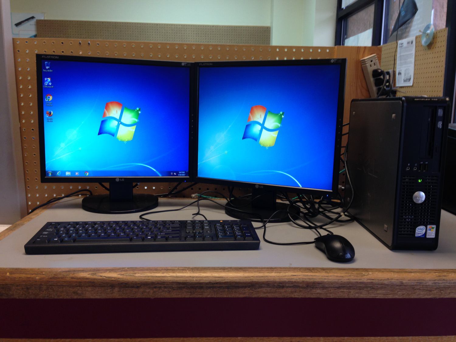 Dell Optiplex 745 SFF Comes with dual 19-inch LG Plantronics Monitors.